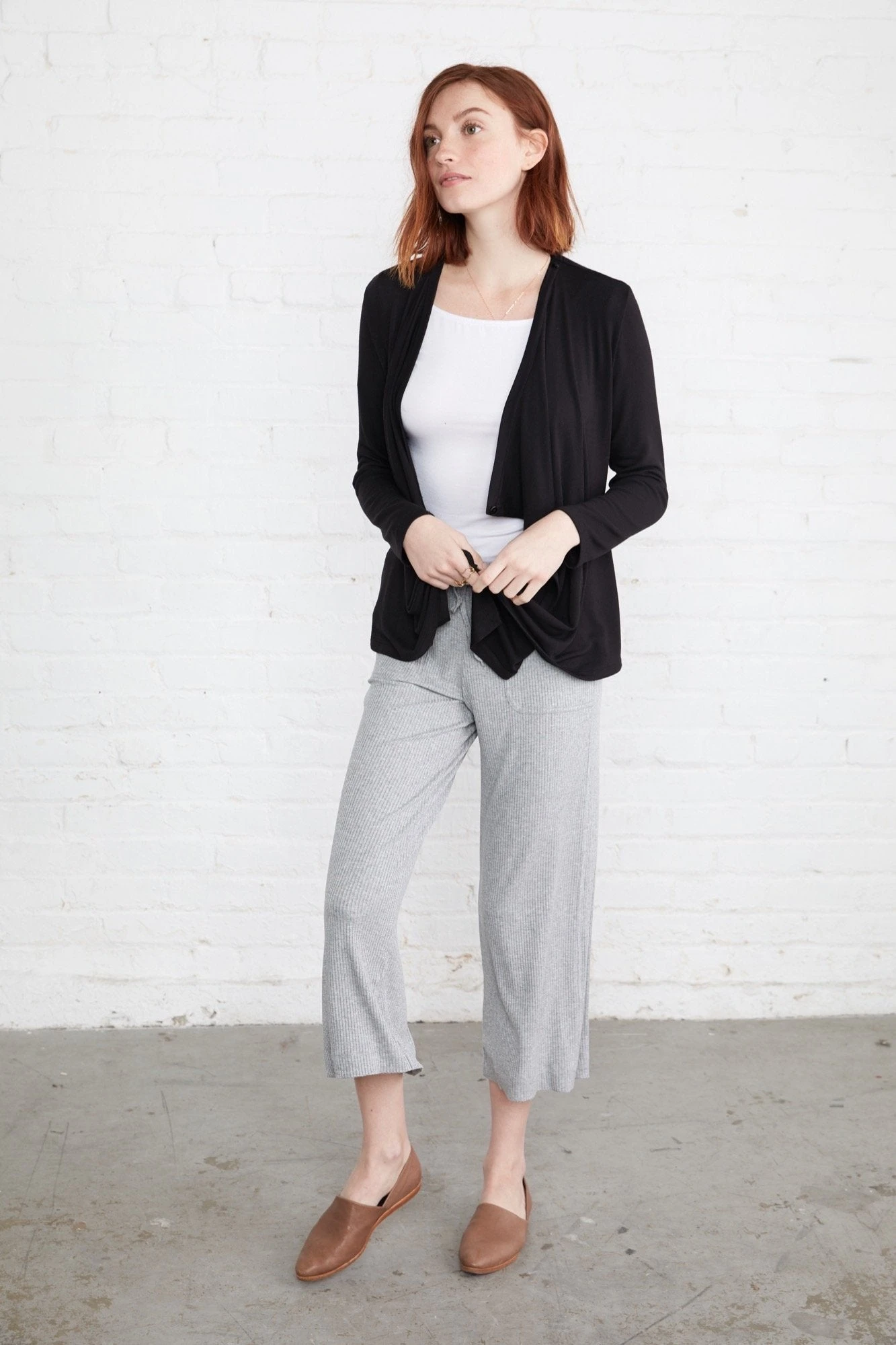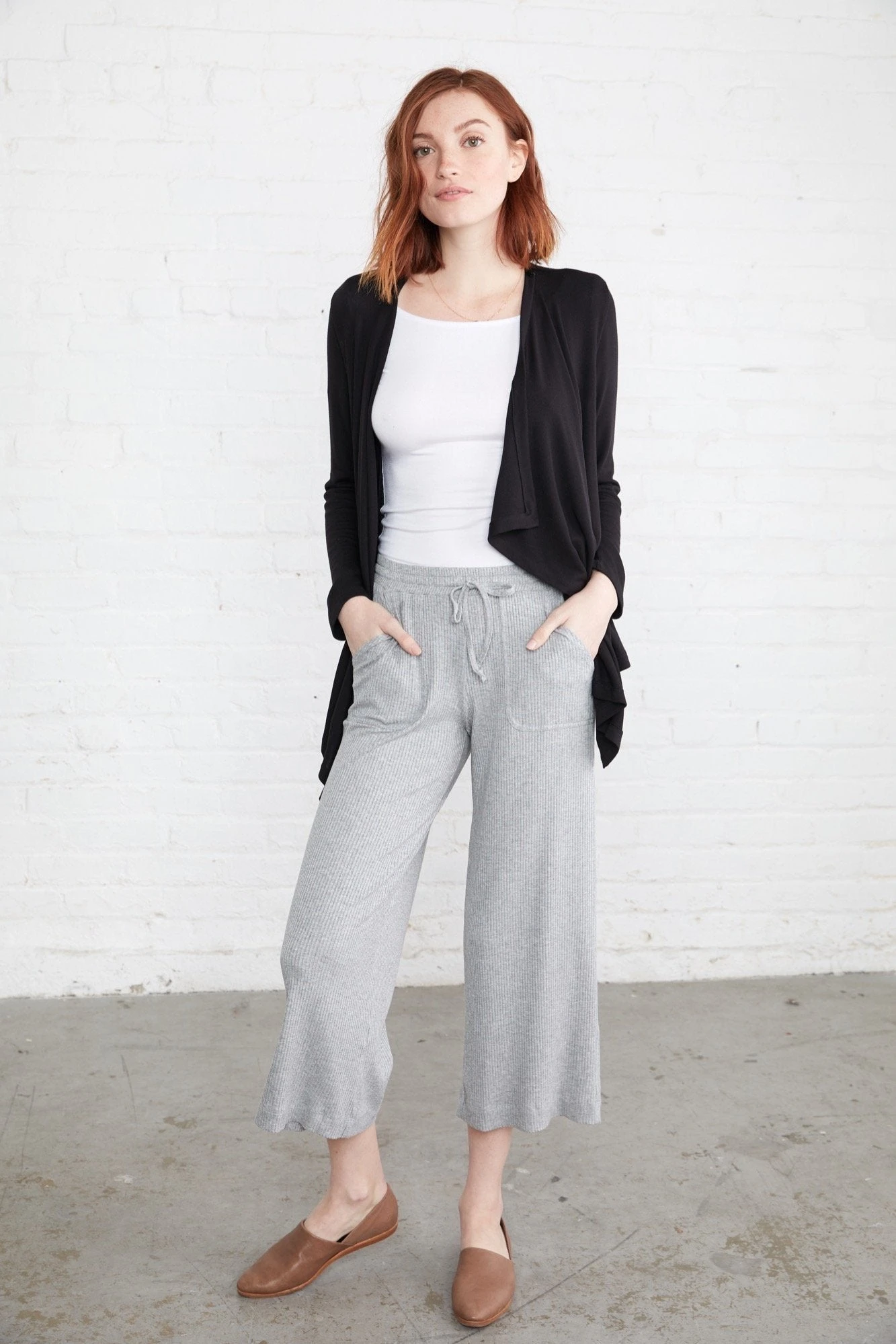 The Alison pant features a cropped silhouette and stretch waist for comfort. Made from our incredibly soft Modal ribbed fabric.Â