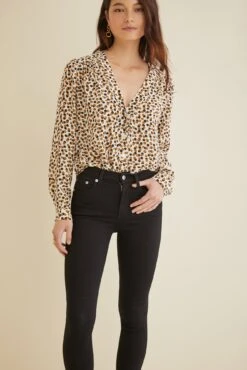 - Wide leg jumpsuit featuring long puff sleeves with cuff and cropped length.