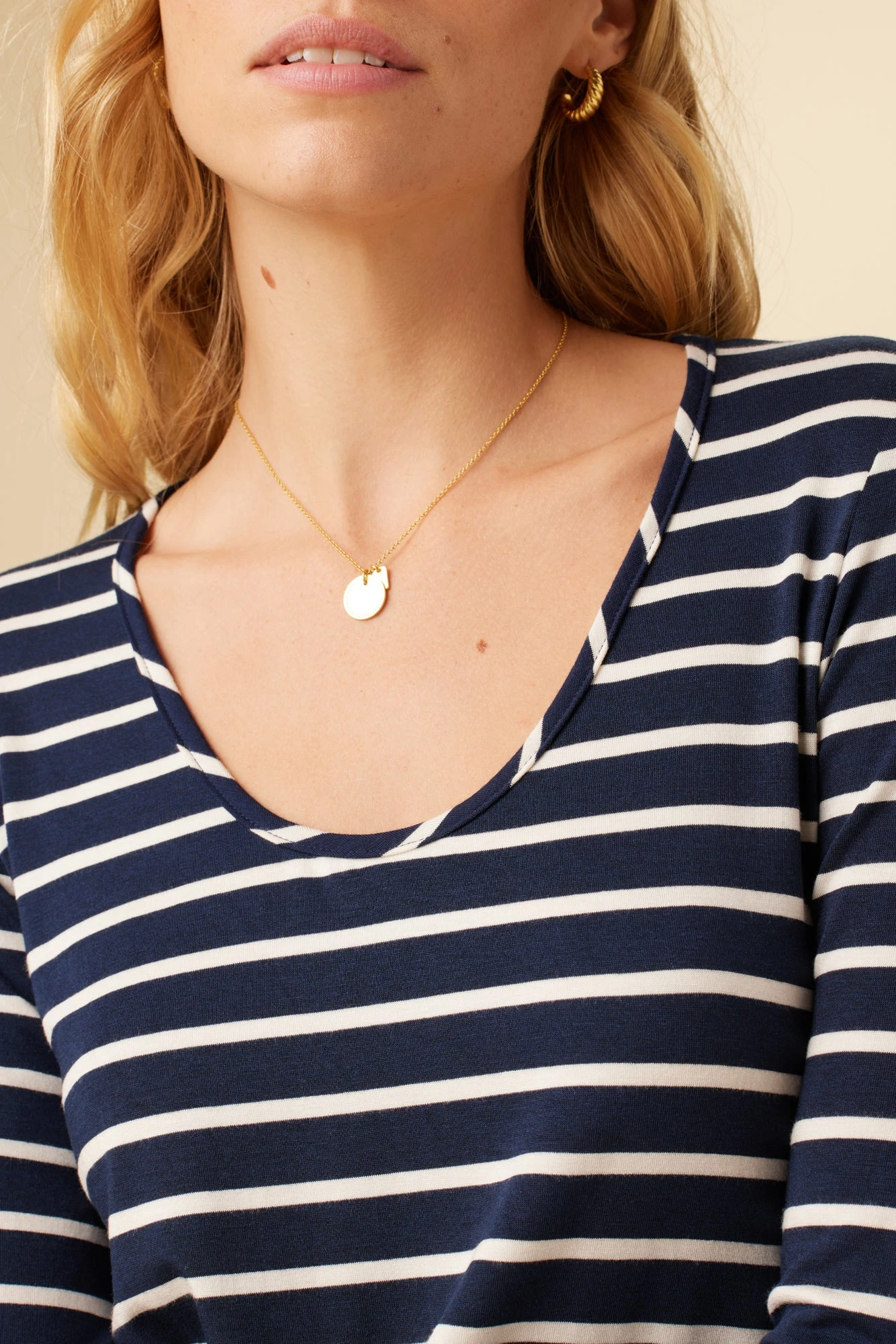 Long sleeve tee with an open neck and shirt-tail hem. A great layering piece made from our softest Dream Knit, this basic can be rotated through your wardrobe all year long.