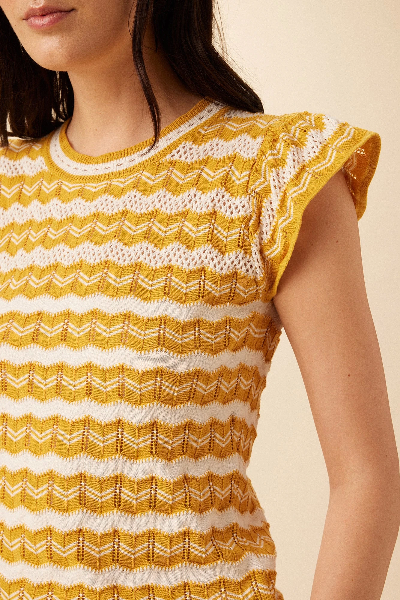 This easy, go-to top features short flutter sleeves, a rounded neckline and is made from our soft and lightweight Organic Cotton. We suggest pairing with your favorite high-rise or mid-rise bottoms.